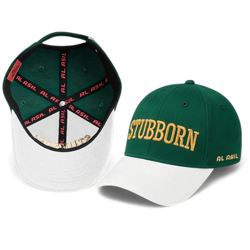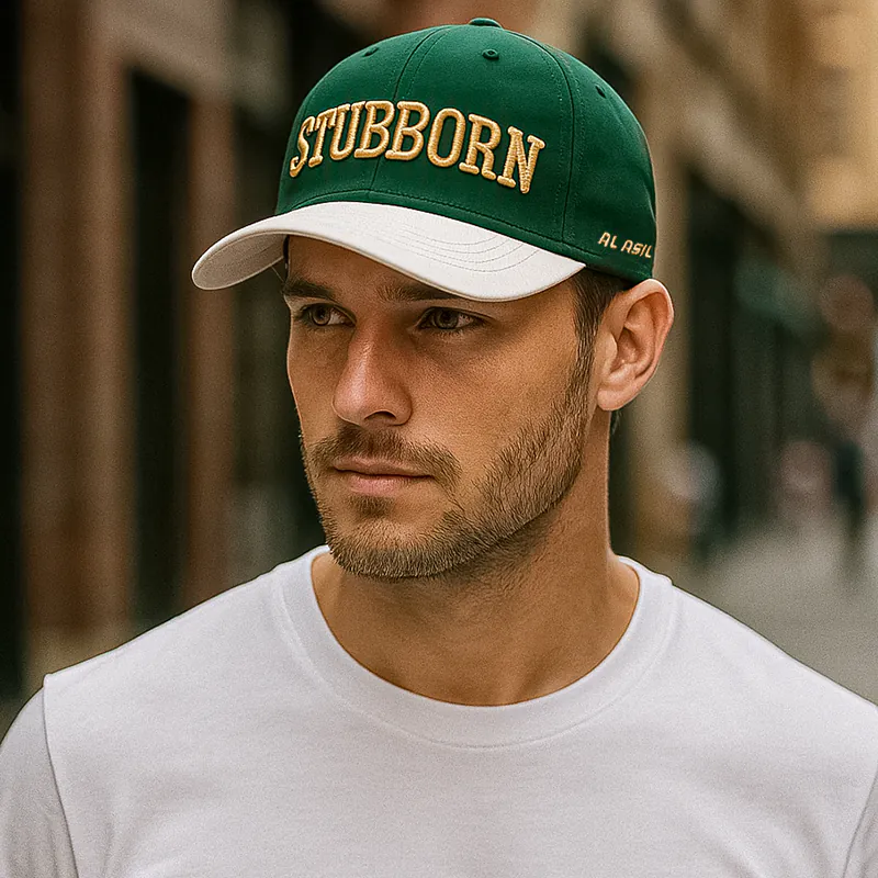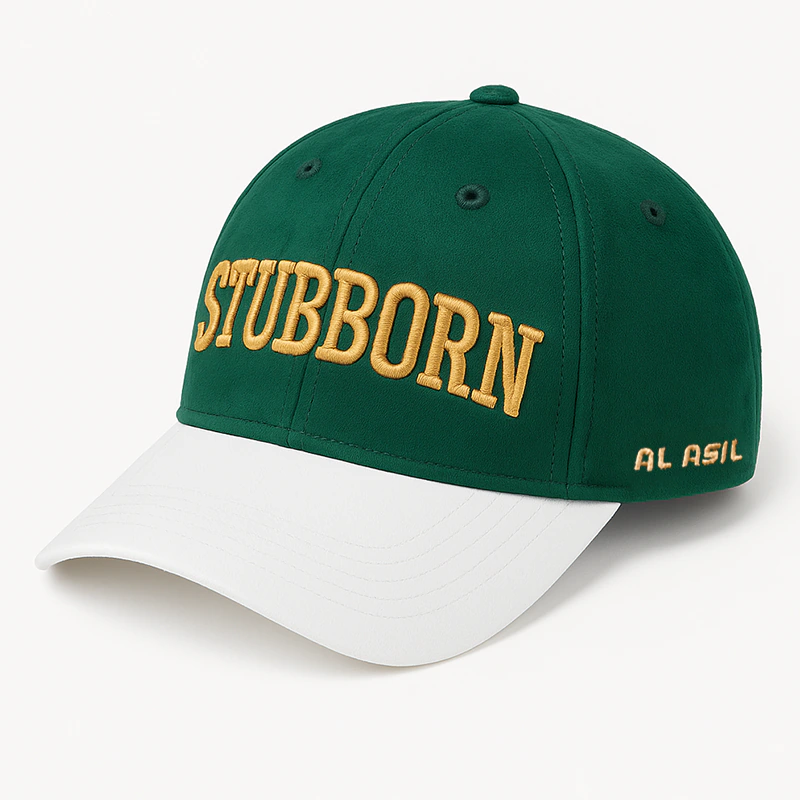 Al Asil, baseball cap, cotton cap, 6-panel cap, adjustable cap, STUBBORN cap, vintage cap, comfortable cap, breathable cap, stylish cap, green and white cap, casual cap, fashion accessory