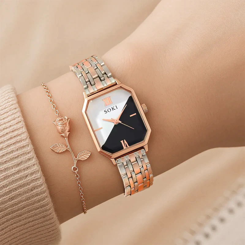 - ঘড়িটির সাথে মিলিয়ে একটি সুন্দর রোজ ডিজাইনের ব্রেসলেট থাকে, যা আরও ফ্যাশনেবল লুক দেয়।