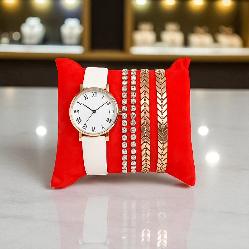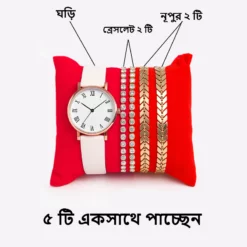 - ঘড়িটির সাথে মিলিয়ে সুন্দর ডিজাইনের ২ টি পায়ের নূপুর এবং ২ টি ব্রেসলেট আছে, যা আরও ফ্যাশনেবল লুক দেয়।