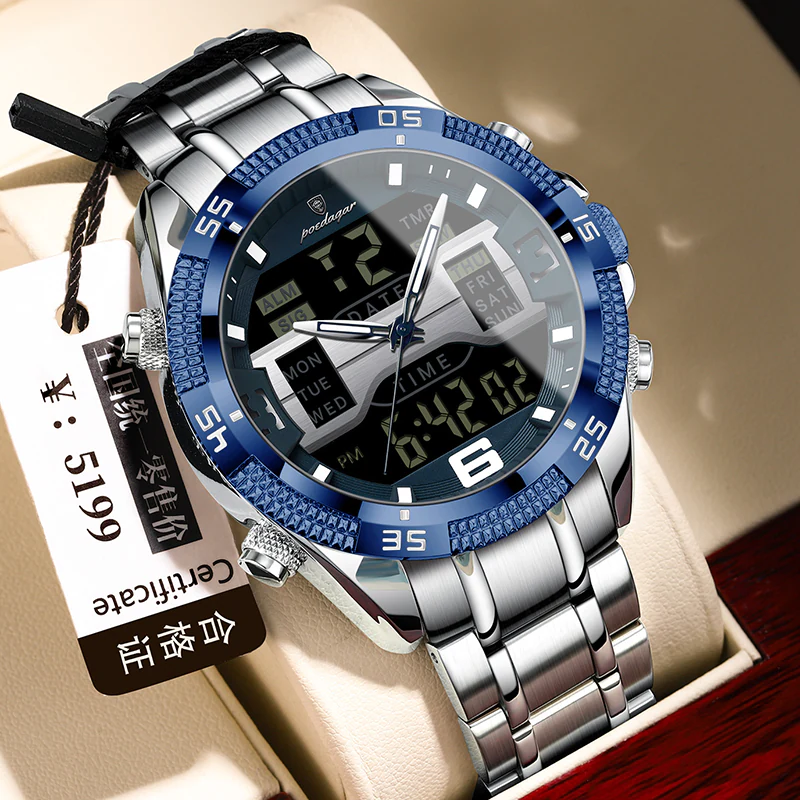 #POEDAGAR#POEDAGARE103#MensWatch#DualDisplayWatch#AnalogDigitalWatch#LuxurySportsWatch#WaterproofWatch#StainlessSteelWatch#BlueDialWatch#ChronoWatch#Timepiece#RetailBD