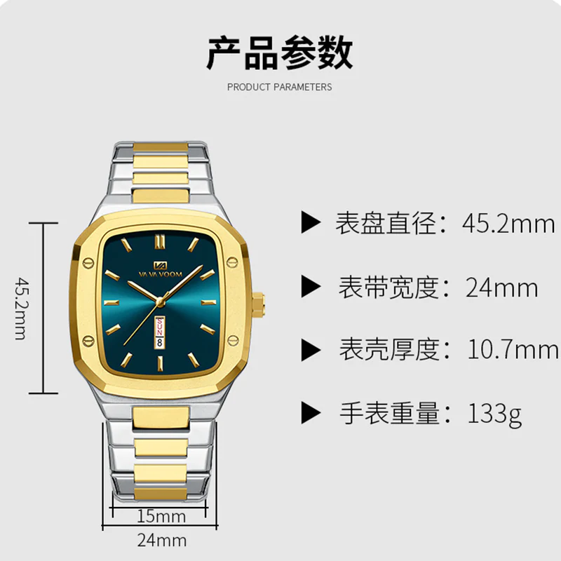 VA VA VOOM ঘড়ি, পুরুষদের ঘড়ি, বিলাসবহুল ঘড়ি, কোয়ার্টজ ঘড়ি, ডাবল ক্যালেন্ডার ঘড়ি, ওয়াটারপ্রুফ ঘড়ি, স্টেইনলেস স্টিল ঘড়ি, ফ্যাশন ঘড়ি, ব্যবসায়িক ঘড়ি, রেকট্যাঙ্গুলার ডায়াল ঘড়ি, মেনস ওয়াচ বাংলাদেশ